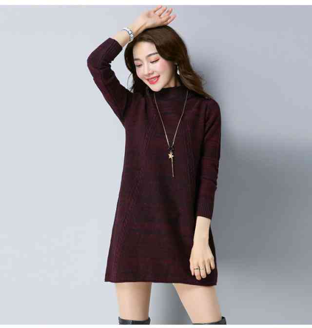 チュニック丈のカジュアルなハイネックニットワンピースです。