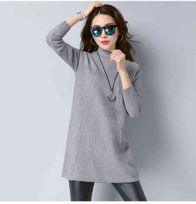 ニット レディース 長袖 ニットソー カットソー セーター ロンT トップス シンプル 大きいサイズ 春 夏 秋 冬 厚手 ハイネック チュニック丈 プルオーバー 体型カバー 二の腕カバー 袖あり ゆったり デート お出かけ 婦人服 ケーブル