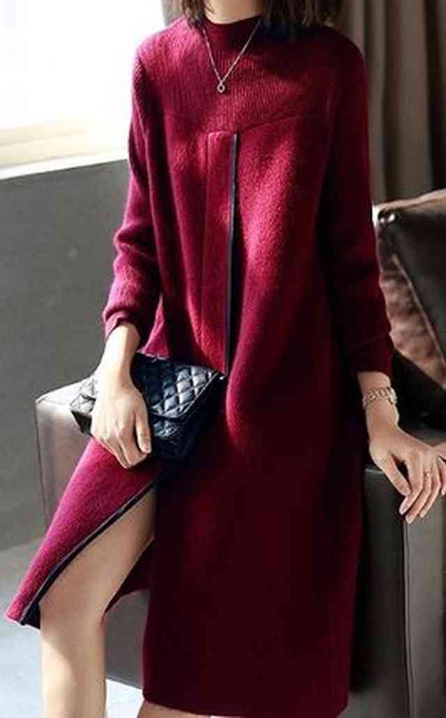 シックで大人っぽいカラーのセータードレスです。