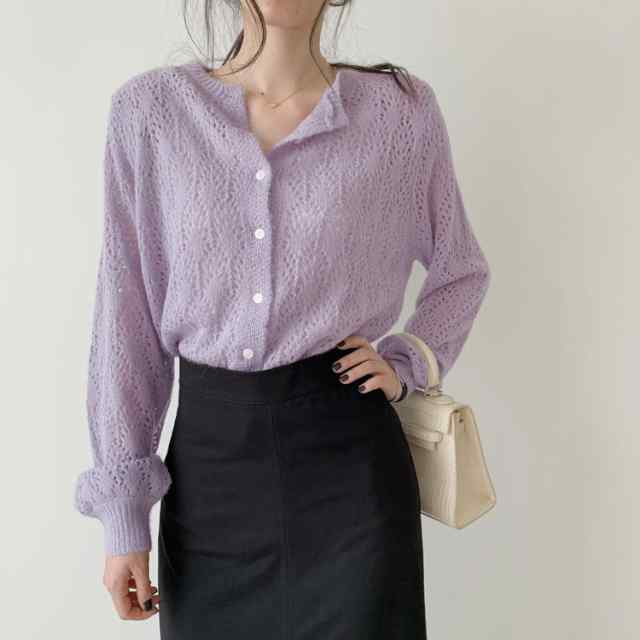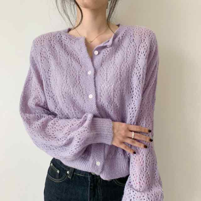 カーディガン レディース 薄手 長袖 カーデ ショートカーディガン 大きいサイズ レディース 羽織り UV対策 ボタン トップス コクーンスリーブ ラウンドネック フェミニン ガーリー エレガント 冷房対策 SNS映え 体型カバー 透かし編み