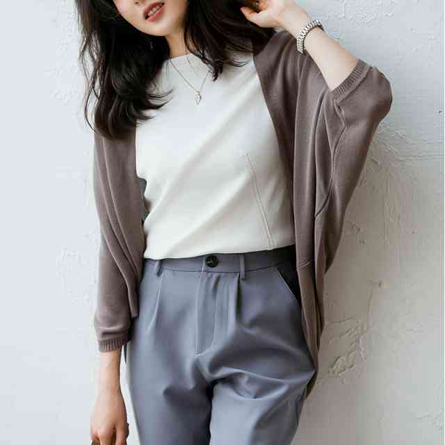 ゆったりとしたドルマンスリーブのシンプルカーディガンです。
