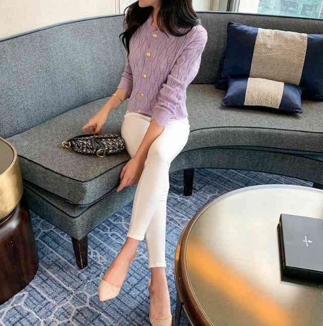 フェミニンで大人っぽいスカラップデザインのニットカーディガンです。