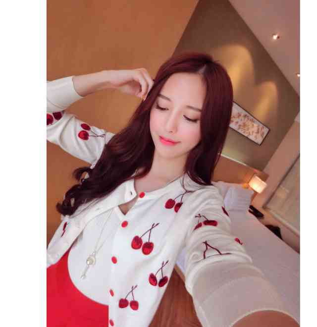 カーディガン レディース 薄手 長袖 カーデ ショートカーディガン 大きいサイズ レディース 羽織り UV対策 ボタン トップス クルーネック チェリー刺繍 さくらんぼ 婦人服 お出かけ デート カジュアル フェミニン キュート 通勤 ママ