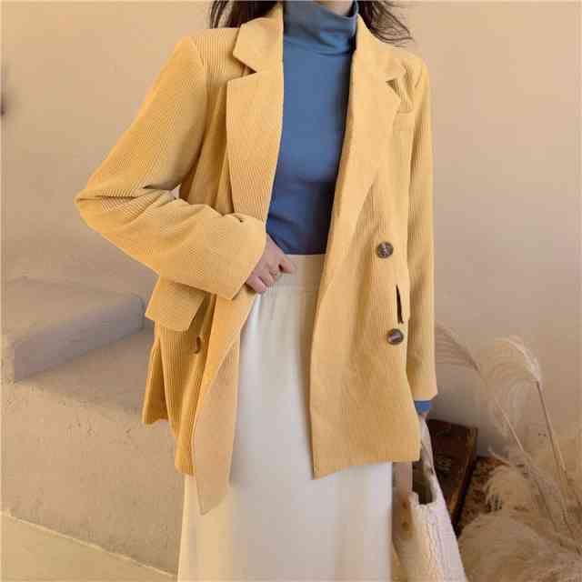 ジャケット レディース カジュアル 秋 長袖 ライトアウター 春アウター フォーマル 羽織 コート オフィス 大きいサイズ コーデュロイ 体型カバー 袖あり 二の腕カバー ゆったり 無地 レトロ デイリー使い テーラード ミディアム 単色