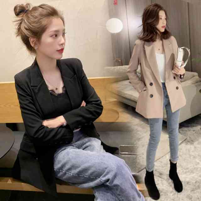 ジャケット レディース カジュアル 秋 長袖 ライトアウター 春アウター フォーマル 羽織 コート オフィス 大きいサイズ テーラード ベーシック シンプル 無地 ダブルブレスト ミディアム ゆったり スリット 通勤 OL 定番 単色 オンオフ