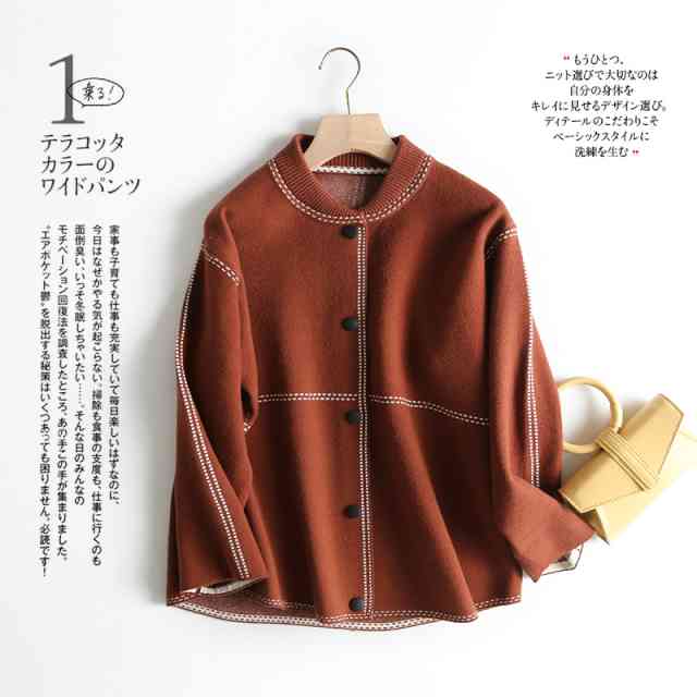 ジャケット レディース カジュアル 秋 長袖 ライトアウター 春アウター フォーマル 羽織 コート オフィス 大きいサイズ ブルゾン ニット ステッチ ボタン デイリー ゆったり ママ 婦人服 楽ちん お出かけ ルーズ 体型カバー バイカラー