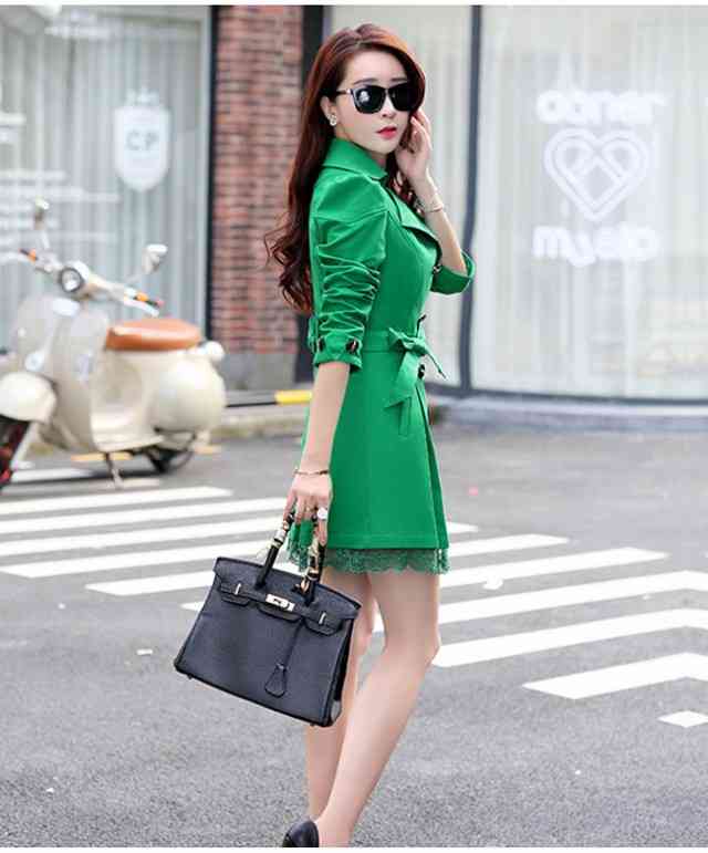 ジャケット レディース カジュアル 秋 長袖 ライトアウター 春アウター フォーマル 羽織 コート オフィス 大きいサイズ トレンチコート レース リボン ベルト付き Aライン スリム 華奢見え パーティー 結婚式 二次会 お呼ばれ ミディアム