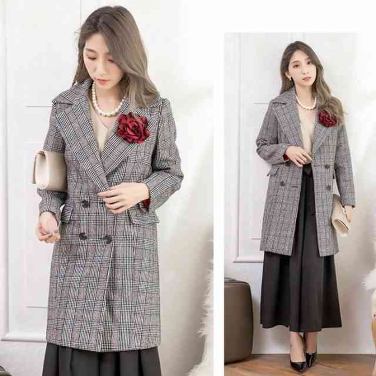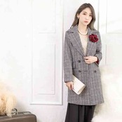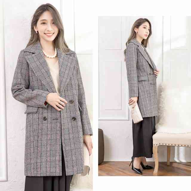 ジャケット レディース カジュアル 秋 長袖 ライトアウター 春アウター フォーマル 羽織 コート オフィス 大きいサイズ ロング丈 コサージュ付き お呼ばれ パーティー 入学式 卒業式 結婚式 二次会 グレンチェック柄 メンズライク ミセス