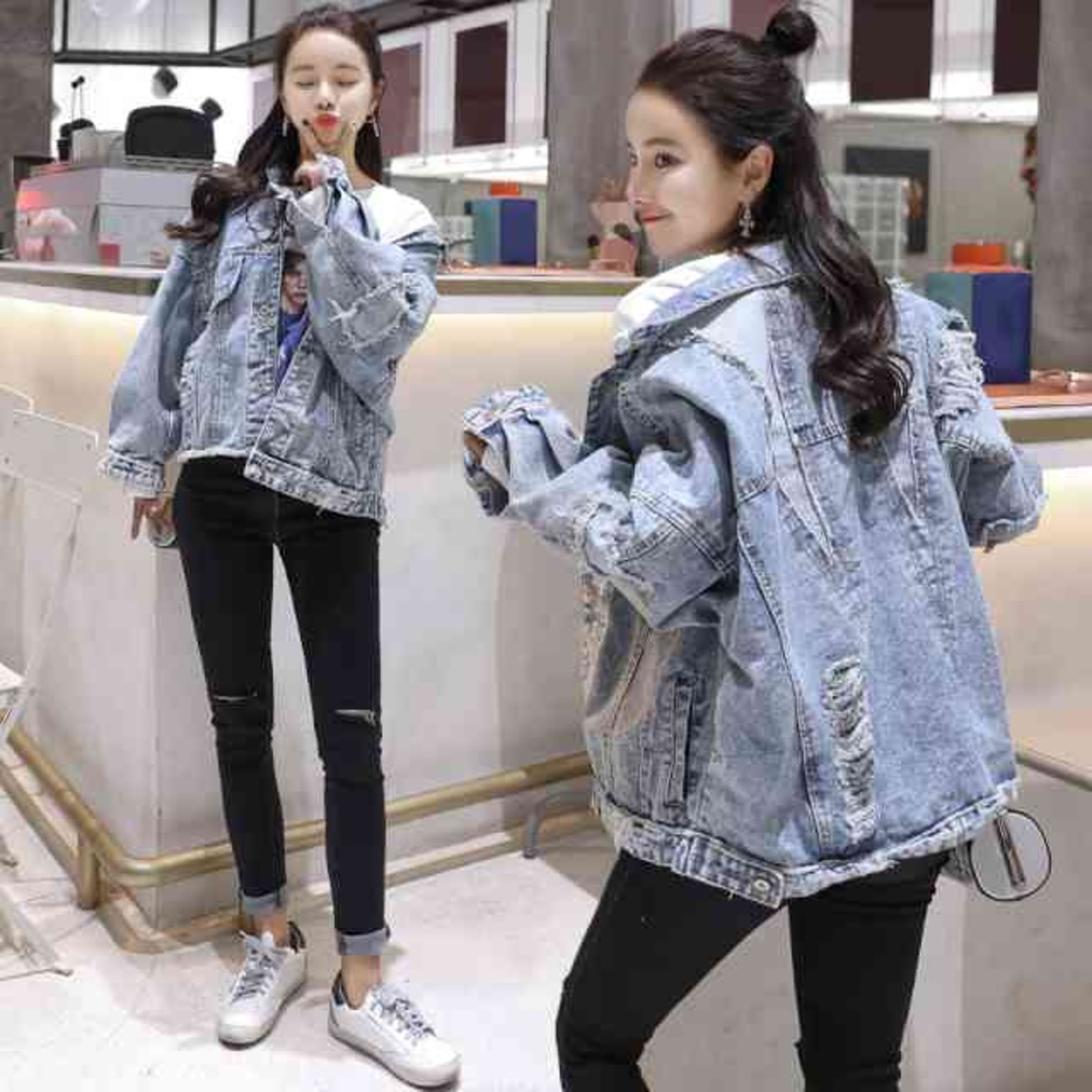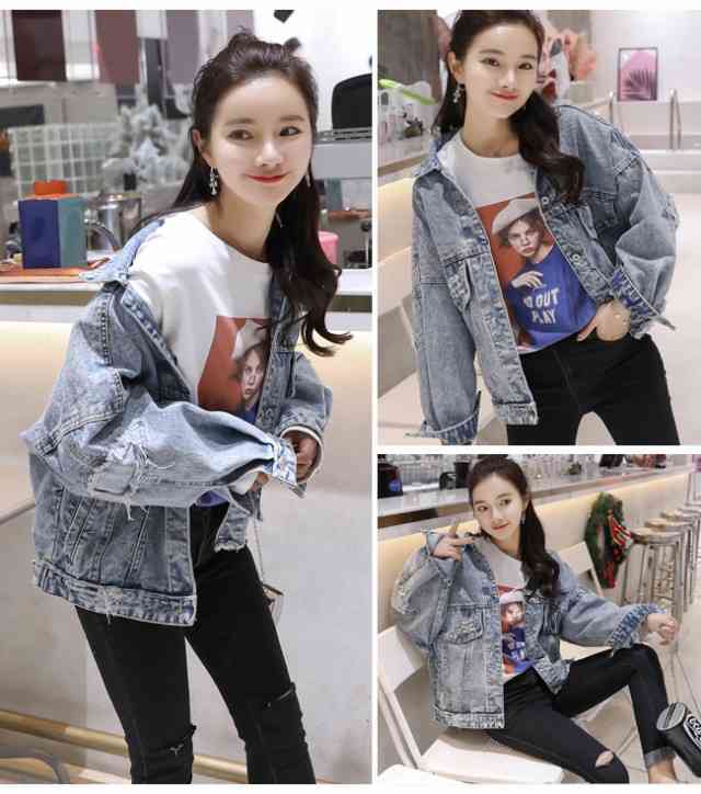 ジャケット レディース カジュアル 秋 長袖 ライトアウター 春アウター フォーマル 羽織 コート オフィス 大きいサイズ デニムジャケット ダメージ加工 メンズライク 肩落ち ゆったり ゆるい ルーズ 体型カバー 二の腕カバー Gジャン