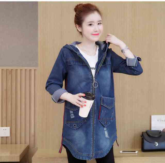 ジャケット レディース カジュアル 秋 長袖 ライトアウター 春アウター フォーマル 羽織 コート オフィス 大きいサイズ デニムジャケット ダメージ加工 メンズライク ジッパー付き フード付き 体型カバー お出かけ 婦人服 無地 レジャー