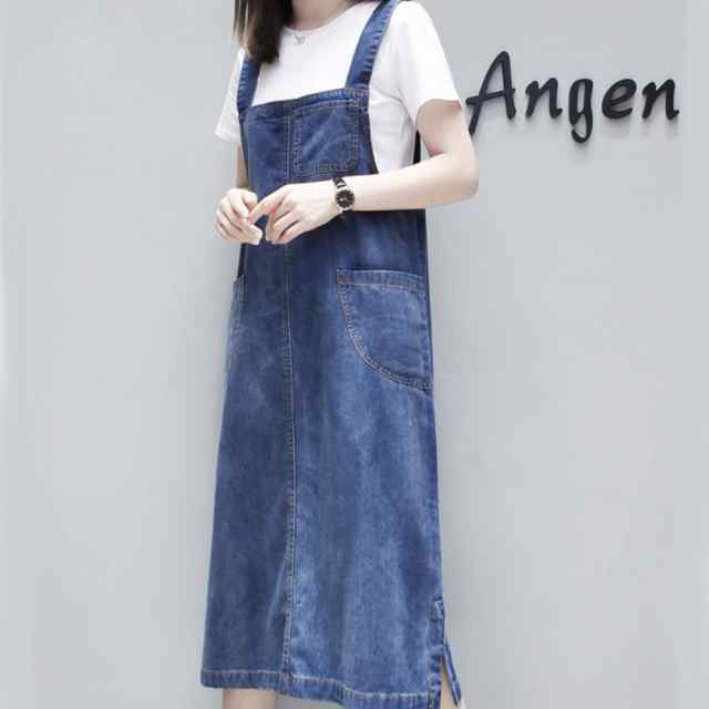 ジャンパースカート レディース ジャンスカ サロペット ワンピース カジュアル 大きいサイズ 綿 デニムスカート ミディアム丈 ガーリー ナチュラル フェミニン シンプル ゆったり 無地 体型カバー SNS映え 新作 デート お出かけ お呼ばれ