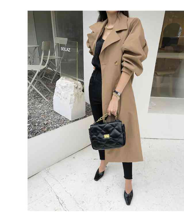 トレンチコート レディース アウター ロング丈 上着 コート トレンチ スプリングコート 大きいサイズ 体型カバー 春 秋冬 パフスリーブ ゆったり ゆるい ふんわり カジュアル シンプル 痩せて見える ベーシックフェミニン 通勤 お出かけ