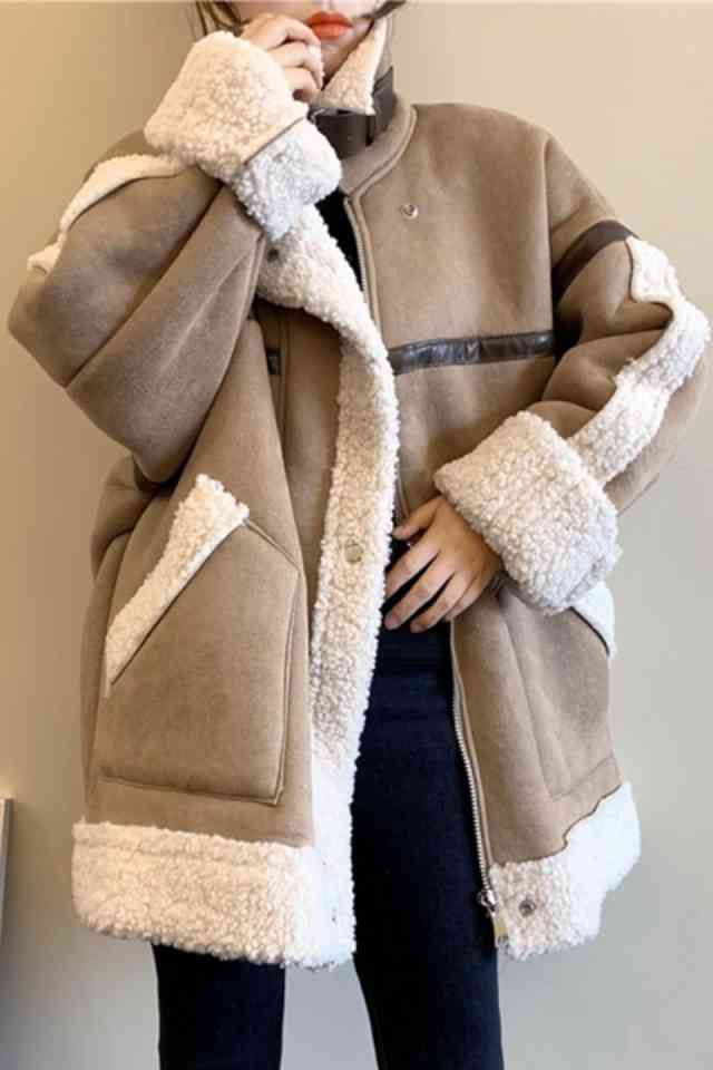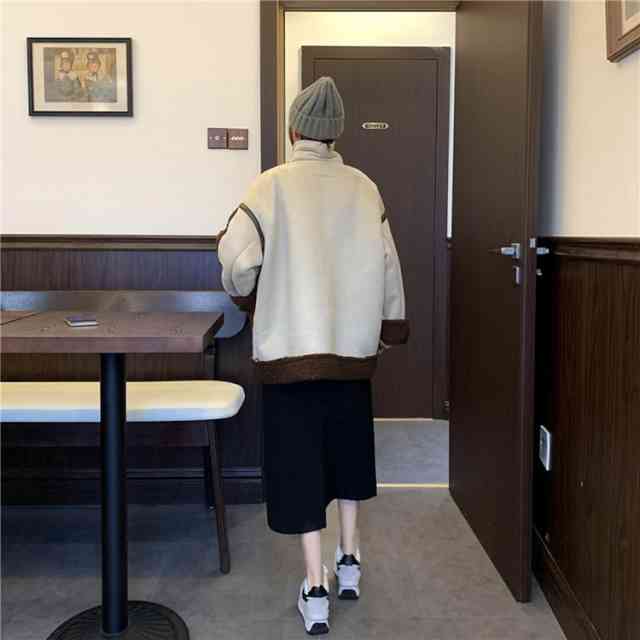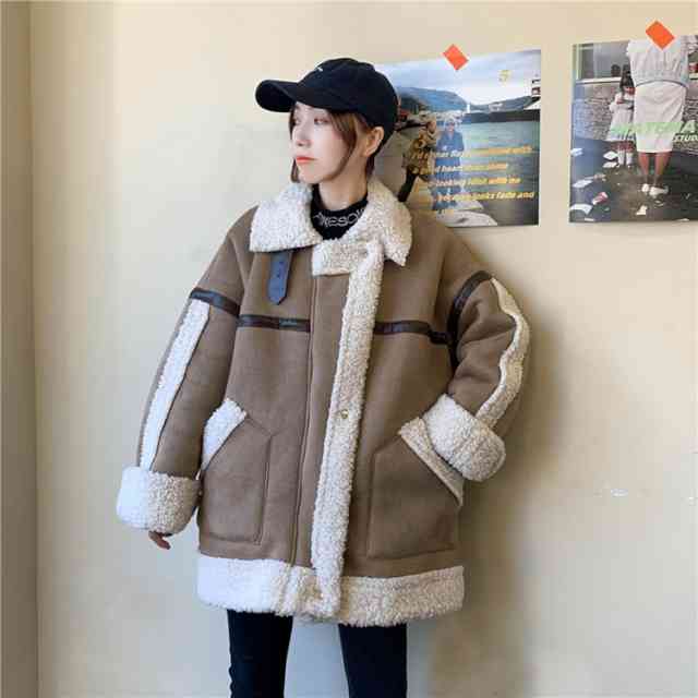 コート レディース ショートコート ムートンコート アウター ジャケット 上着 大きいサイズ 秋 冬 ボアブルゾン ボアジャケット 暖かい 体型カバー ゆったり ゆるい ふんわり バイカラー カジュアル ビックシルエット 防寒 マニッシュ