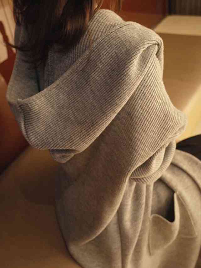 ゆったりとしたデザインとフード付きのお洒落なセーターコートです。
