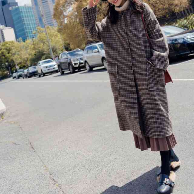 コート レディース ロングコート アウター ジャケット 上着 大きいサイズ 秋 冬 ステンカラー チェスター チェック柄 グレンチェック レトロ ゆったり ゆるい 体型カバー お出かけ きれいめ ポケット デイリー トレンド デート OL ミセス