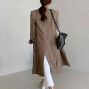 シンプルな定番のデザインだから通勤にもおすすめ。さらっと着れるチェスターコートです。