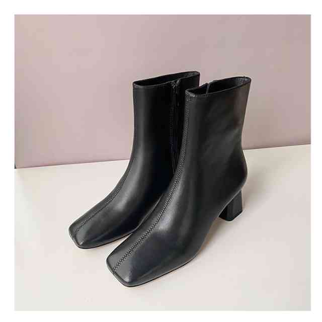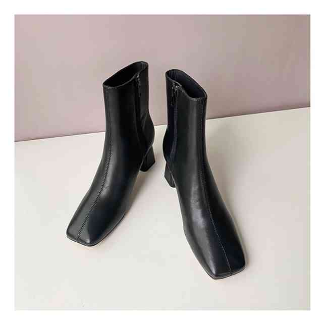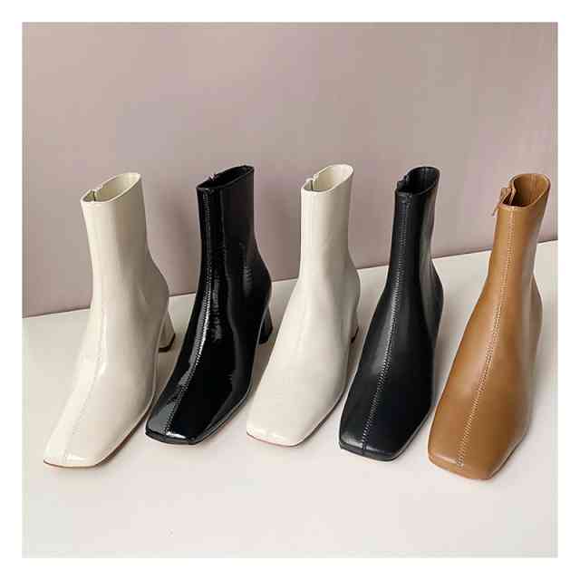 ブーツ レディース ショートブーツ 歩きやすい 5cm ヒール 秋冬 大きいサイズ 小さい 疲れない 靴 足が痛くならない 袴 卒業式 レザー 光沢感 スクエアトゥブーツ サイドジッパー クール 辛め お呼ばれ お出かけ デート OL ミセス ママ