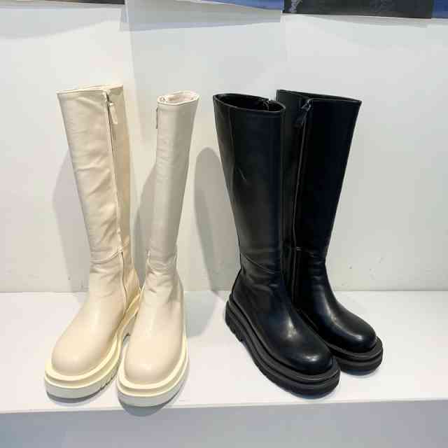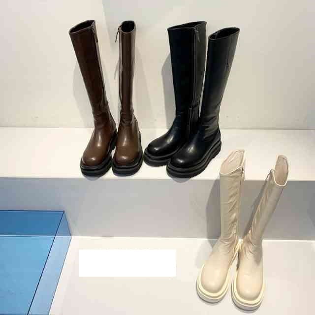 ブーツ レディース ロングブーツ 歩きやすい 5cm ヒール 秋冬 大きいサイズ 小さい 疲れない 靴 足が痛くならない 袴 卒業式 レザー 本革 ベーシック ボリュームソール 厚底 シンプル お出かけ 婦人服 デート キレイめ ラウンドトゥ 美脚
