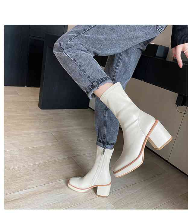 ブーツ レディース ショートブーツ 歩きやすい 8cm ヒール 秋冬 大きいサイズ 小さい 疲れない 靴 足が痛くならない 袴 卒業式 脚長効果 美脚効果 厚底ヒール お出かけ デート かっこいい ジッパー付き 着脱簡単 モード チャンキーヒール