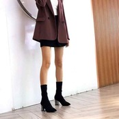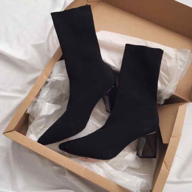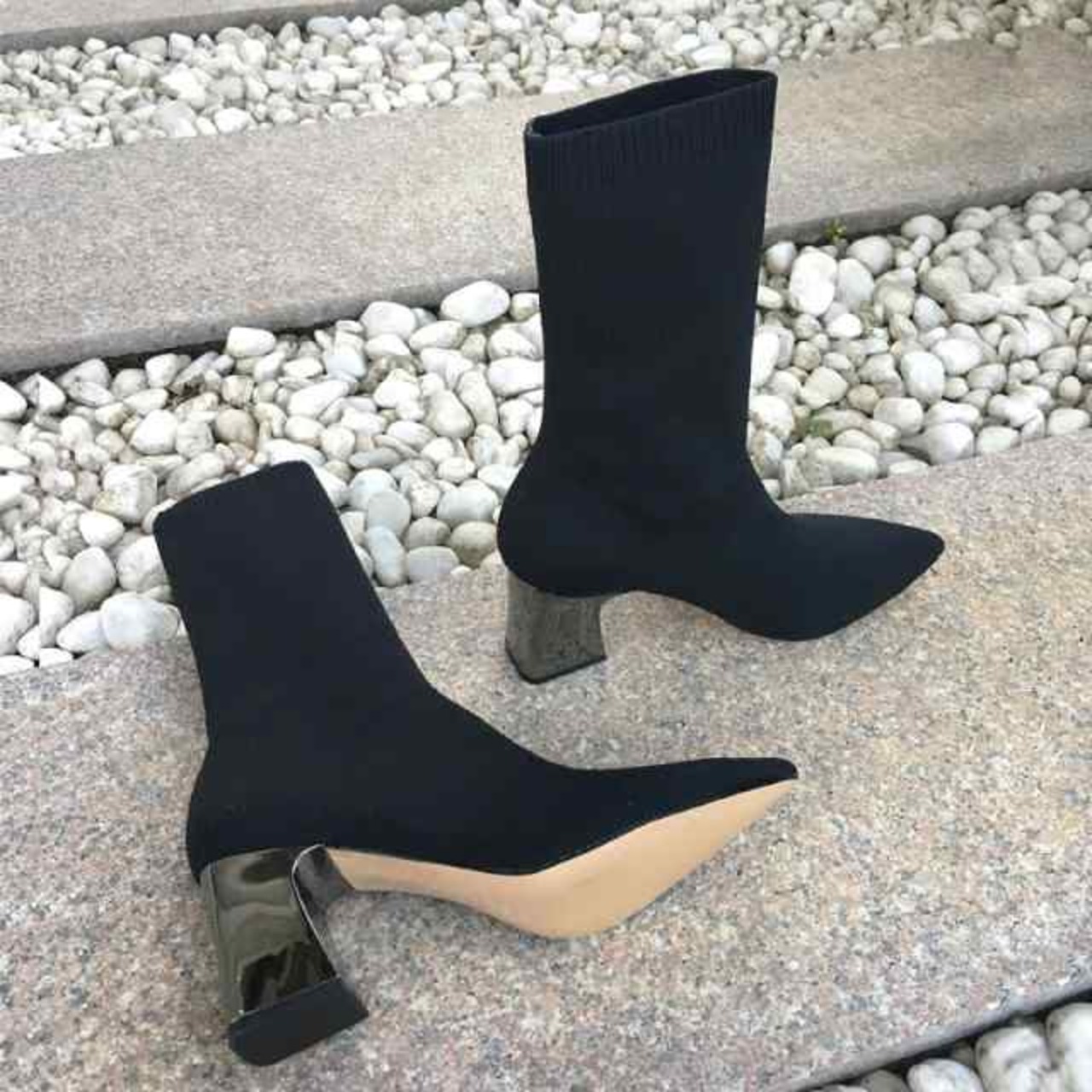 ブーツ レディース ミドルブーツ 歩きやすい 7cm ヒール 秋冬 大きいサイズ 小さい 疲れない 靴 足が痛くならない 袴 卒業式 ソックスブーツ ミディ ポリエステル チャンキーヒール カジュアル ナチュラル お洒落 キレイめ 美脚効果 人気