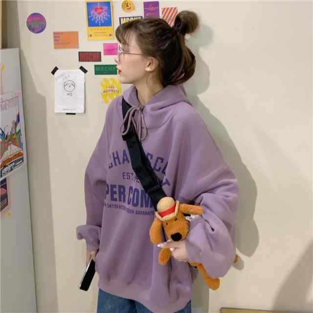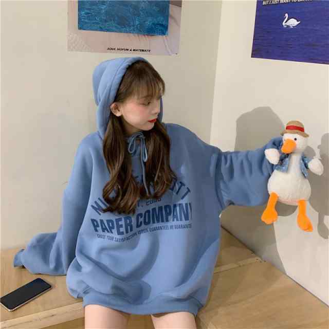 パーカー レディース トップス トレーナー スウェット スエット プルオーバー フード フーディー 大きいサイズ ビッグシルエット フード付き 長袖 カジュアル ナチュラル ガーリー ゆったり 痩せて見える 体型カバー バルーン袖 英字