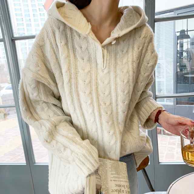 ニット レディース トップス 長袖 セーター トップス ニットセーター ゆったり ゆるニット 大きいサイズ おしゃれ ケーブルニット フード付き シンプル カジュアル ナチュラル キレイめ 上品 ガーリー 体型カバー 他と被らない 新作 人気