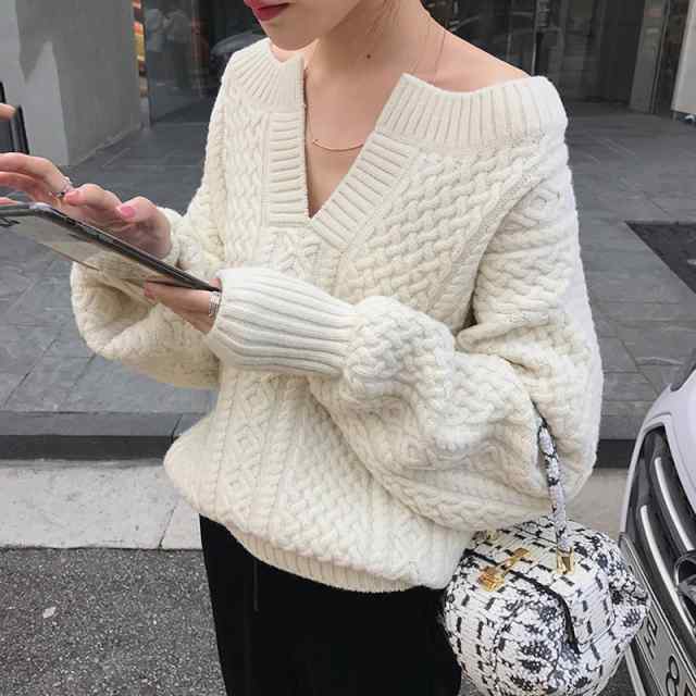 ニット レディース トップス 長袖 セーター トップス ニットセーター ゆったり ゆるニット 大きいサイズ おしゃれ 綿 Vネック シンプル カジュアル ナチュラル キレイめ 上品 ガーリー 体型カバー ケーブルニット おすすめ 新作 ビジネス