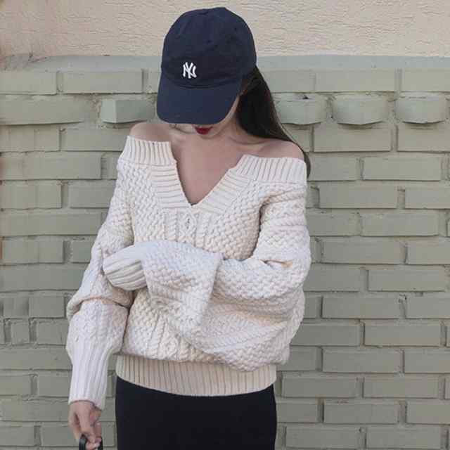 デコルテを強調するオフショルニットです。大人可愛いのがポイントです。