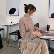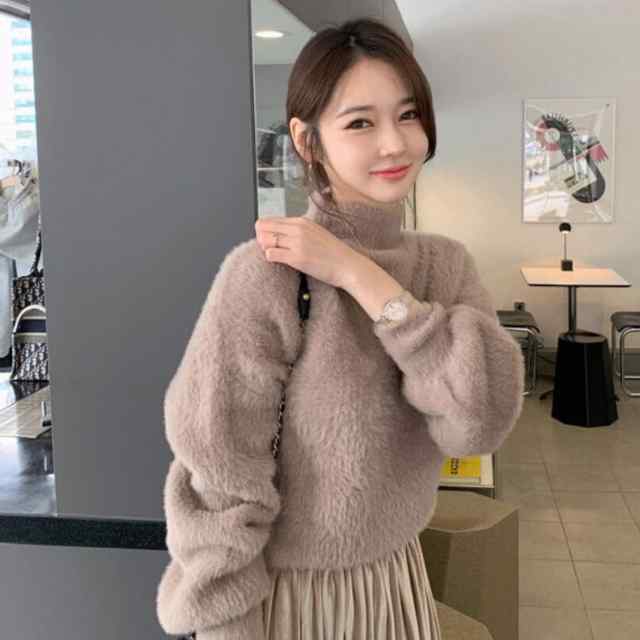 タートルネックによって首を長く見せて小顔効果を発揮させます!