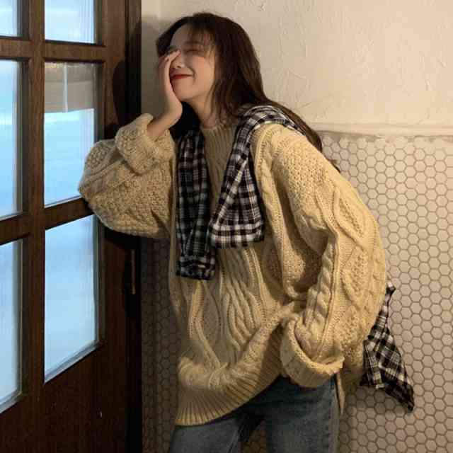 ニット レディース トップス 長袖 セーター トップス ニットセーター ゆったり ゆるニット 大きいサイズ おしゃれ クルーネック ケーブル編み ビックシルエット 体型カバー カジュアル シンプル 定番 普段使い デイリー 暖かい 可愛い