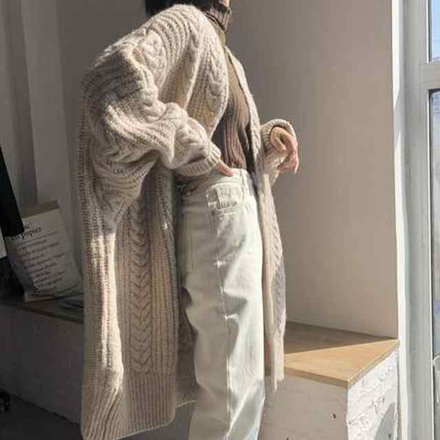 ニット カーディガン ニットコート カーデ ミディアム丈 ロング丈 厚手 ゆったり 体型カバー 長袖 コーディガン 秋冬 トップス 前開き アウター オーバーサイズ ケーブル編み シンプル カジュアル ナチュラル お洒落 可愛い 大人気 新作