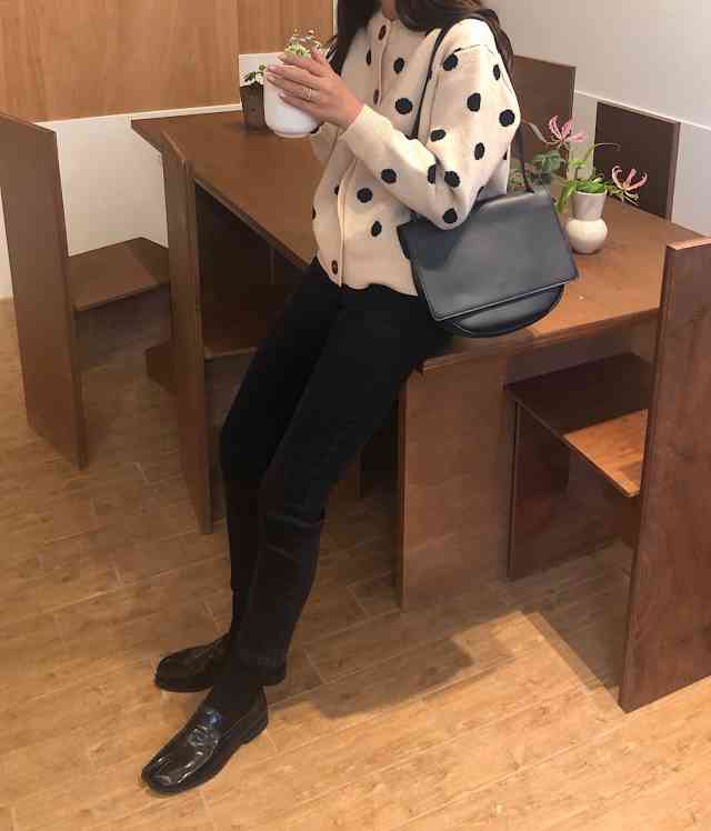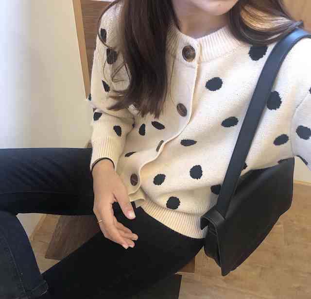 レトロな雰囲気で可愛らしいドット柄カーディガンです。