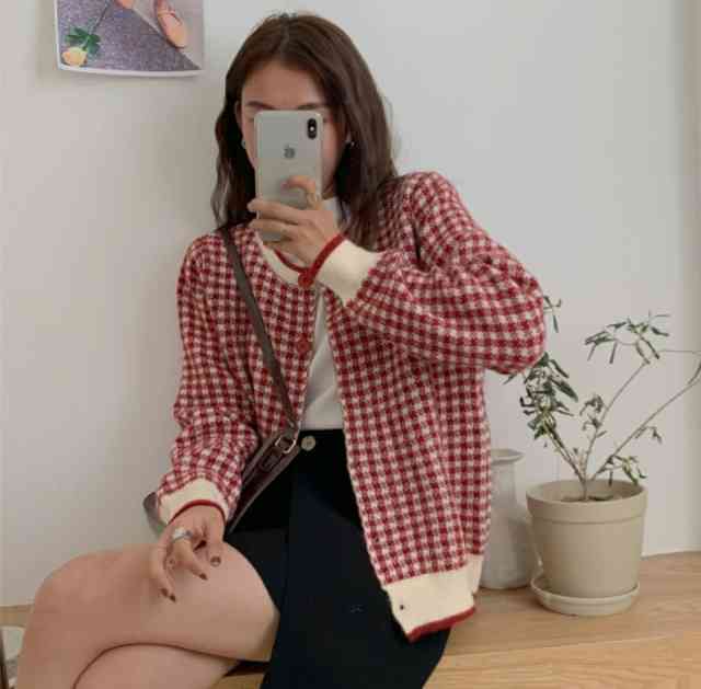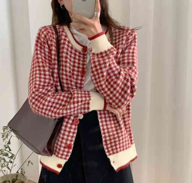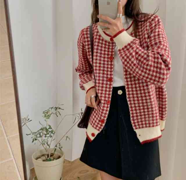 ニット カーディガン ニットコート カーデ ショート丈 厚手 ゆったり 体型カバー 長袖 コーディガン 秋冬 トップス 前開き アウター チェック柄 ギンガムチェック カジュアル 可愛い 普段使い お出かけ フェミニン 大人女子 甘め 通勤