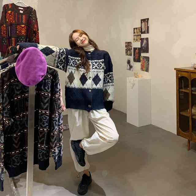 ニット カーディガン ニットコート カーデ ミディアム丈 厚手 ゆったり 体型カバー 長袖 コーディガン 秋冬 トップス 前開き アウター アーガイル ノーカラー ルーズ ケーブルニット 可愛い 暖かい 普段使い カジュアル お洒落 ざっくり