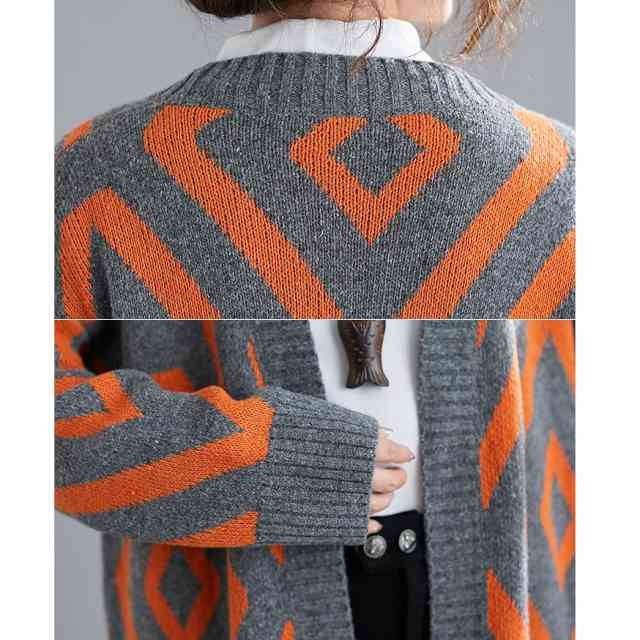 ニット カーディガン ニットコート カーデ ロング丈 厚手 ゆったり 体型カバー 長袖 コーディガン 秋冬 トップス 前開き アウター 綿 ウール Vネック シンプル カジュアル ナチュラル お洒落 格子柄 他と被らない 新作 おすすめ 大人気