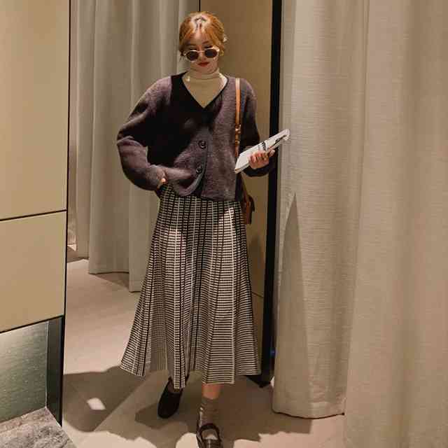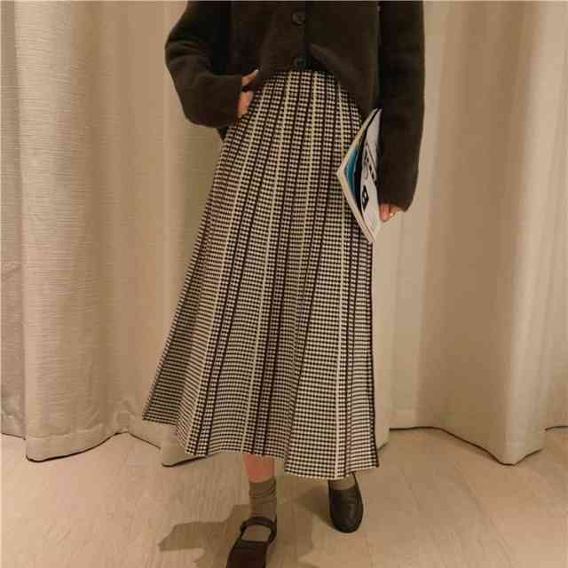 スカート レディース ボトム 大きいサイズ ロング丈 大人 スカート 綿 プリーツスカート シンプル カジュアル ナチュラル お洒落 可愛い 他と被らない 新作 人気 おすすめ 体型カバー オトナ可愛い 痩せて見える 格子柄 OL オンオフ ママ