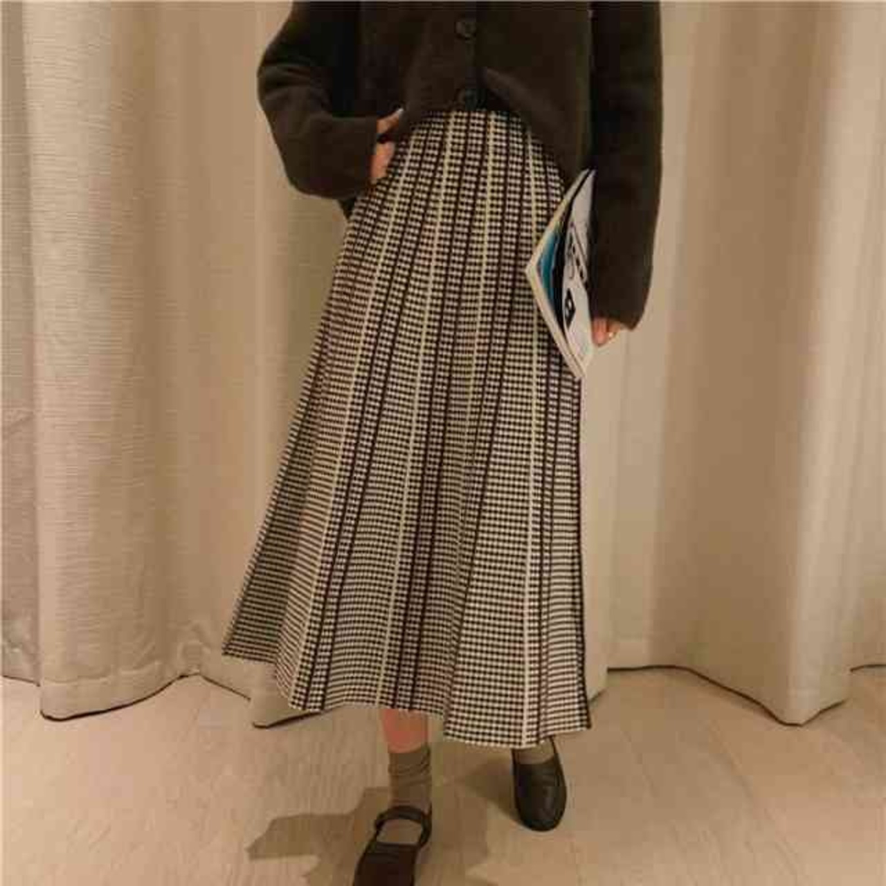 チェックのプリーツスカート