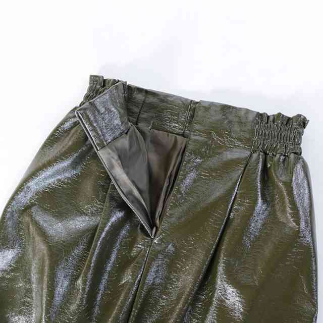韓国デザインのレザースカートです。光沢感のあるエレガントなレザー素材。