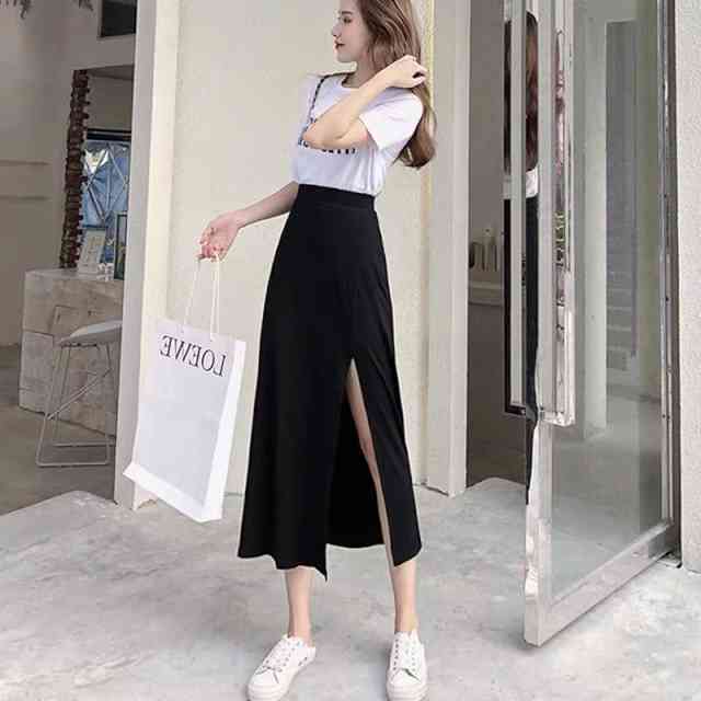 スカート レディース ロング 大きいサイズ 大人 スカート ハイウエスト サイドスリット シンプル カジュアル ナチュラル お洒落 可愛い 他と被らない 新作 人気 おすすめ 体型カバー オトナ可愛い 痩せて見える かっこいい モノトーン