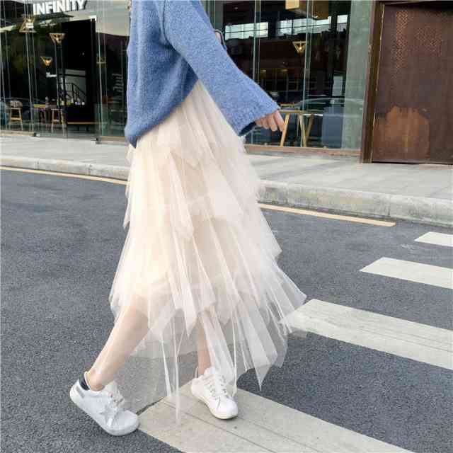 スカート レディース ロング ボトム 大きいサイズ ミモレ ミディアム丈 大人 スカート ロング丈 ふんわり チュール カジュアル 体型カバー 綺麗 お洒落 可愛い 大人女子 ボリューム 上品 普段使い お出かけ デート 個性的 ティアード