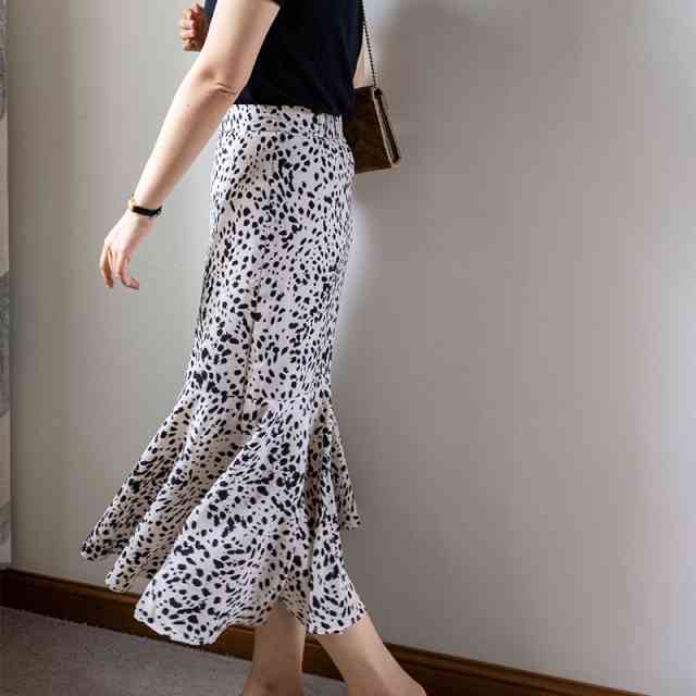 スカート レディース ロング ボトム 大きいサイズ ミモレ ミディアム丈 大人 スカート ロング丈 ふんわり レオパード柄 ヒョウ柄 マーメイド 裾フリル お洒落 可愛い 大人女子 普段使い デート お出かけ 上品 綺麗 カジュアル ミセス