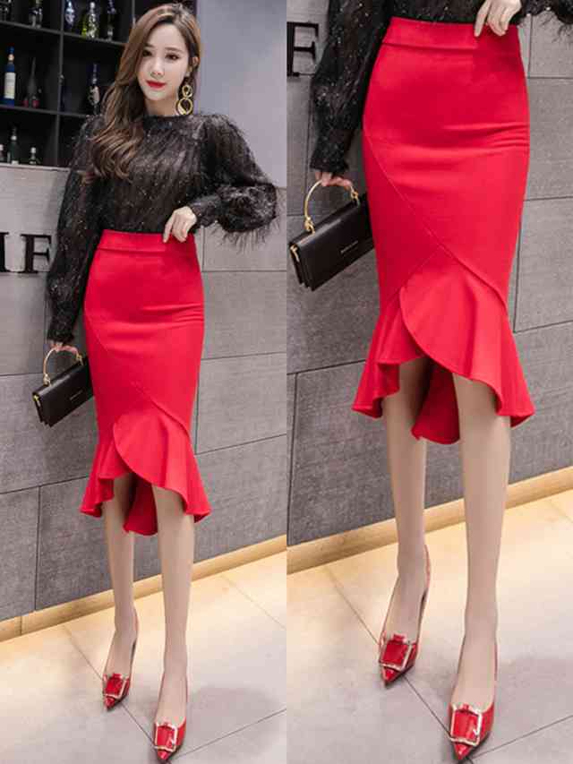 スカート レディース ロング ボトム 大きいサイズ ミモレ ミディアム丈 ひざ丈 大人 スカート マーメイドスカート タイト セクシー 脚長効果 美脚効果 シンプル フリル 可愛い エレガント 上品 綺麗 大人女子 キレイめ お呼ばれ 普段使い