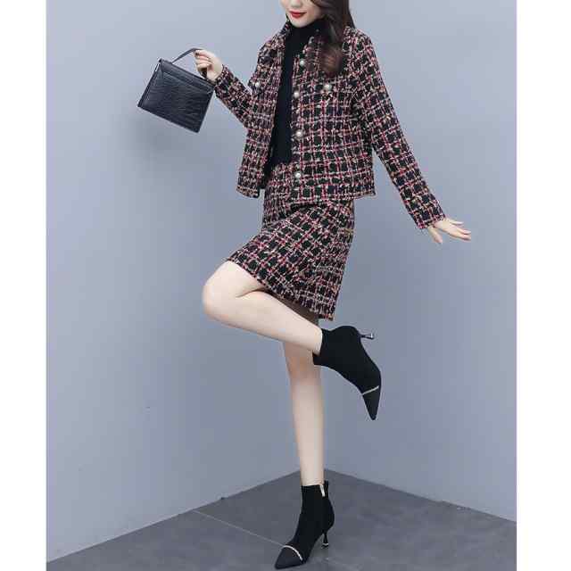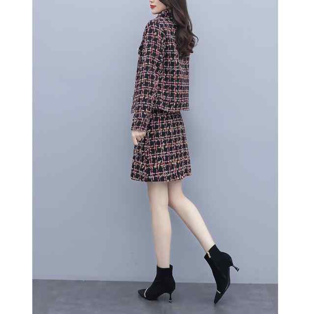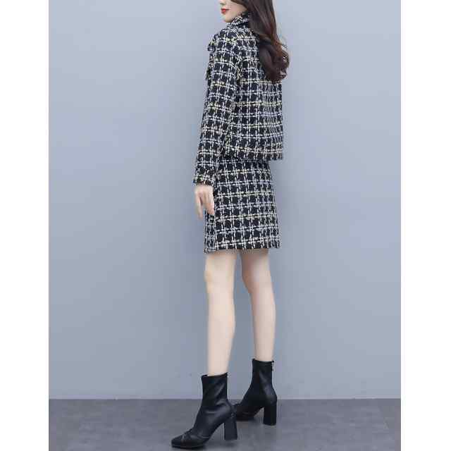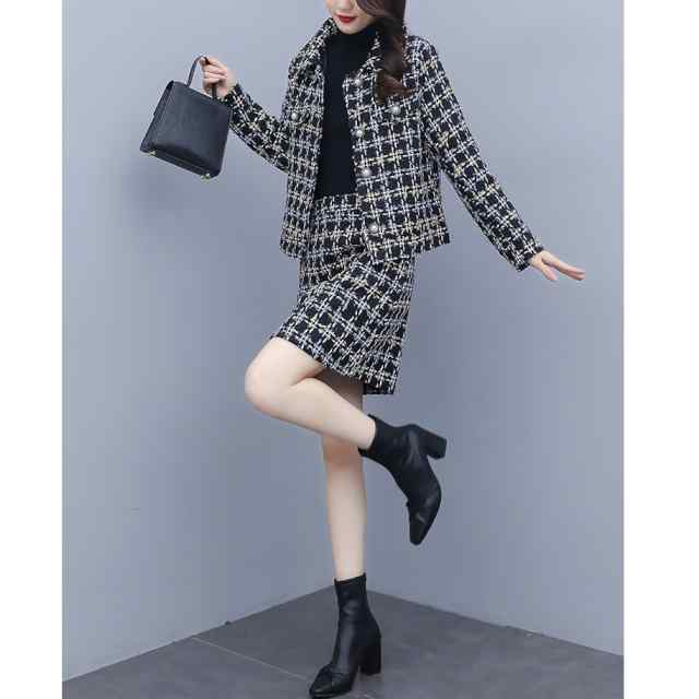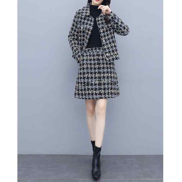 セットアップ レディース カジュアル 上下セット ツーピース 長袖 ジャケット フォーマル チェック柄 Aラインスカート シンプル キレイめ ナチュラル お洒落 可愛い フォーマル系 新作 おすすめ 体型カバー 他と被らない オトナ可愛い