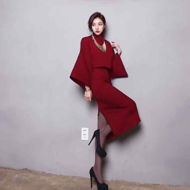 ゆったりめのトップスとタイトなハイスリットスカートエレガントなセットアップです。