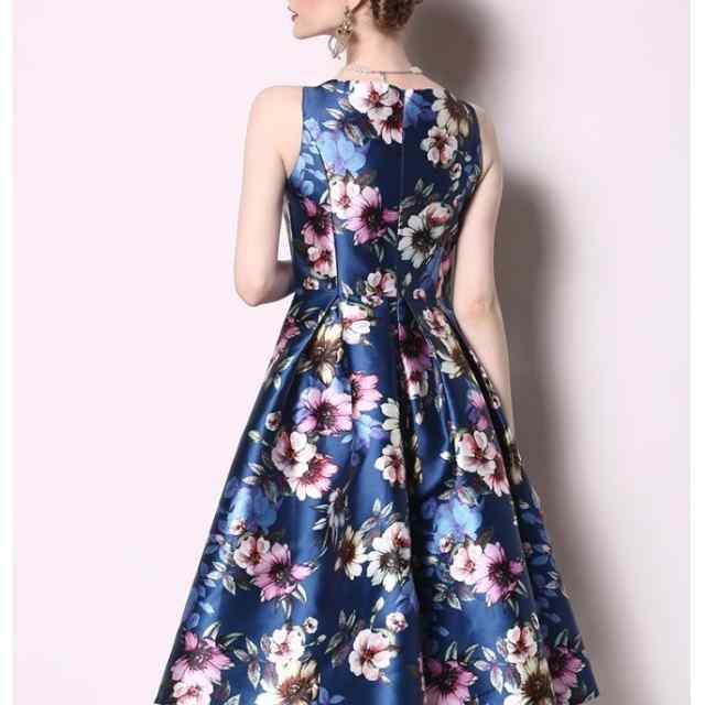 パーティードレス 結婚式 ドレス ワンピース レディース 二次会 お呼ばれ パーティー 大きいサイズ フレアスカート 花柄 ミディアムドレス キレイめ ナチュラル お洒落 可愛い お食事会 OL おすすめ フォーマル 他と被らない エレガント