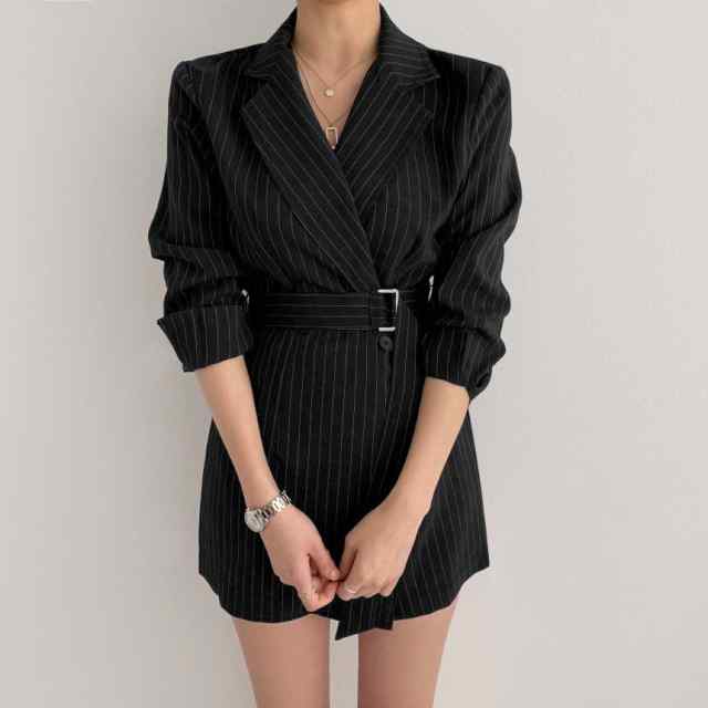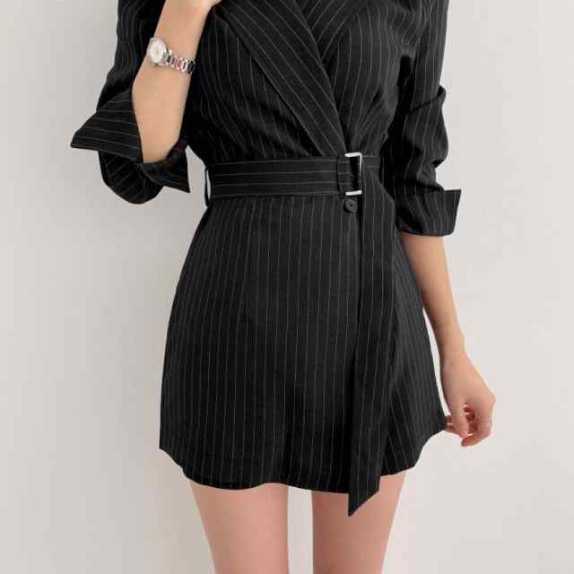 オトナ女子のストライプ×ジャンプスーツのセットアップ
