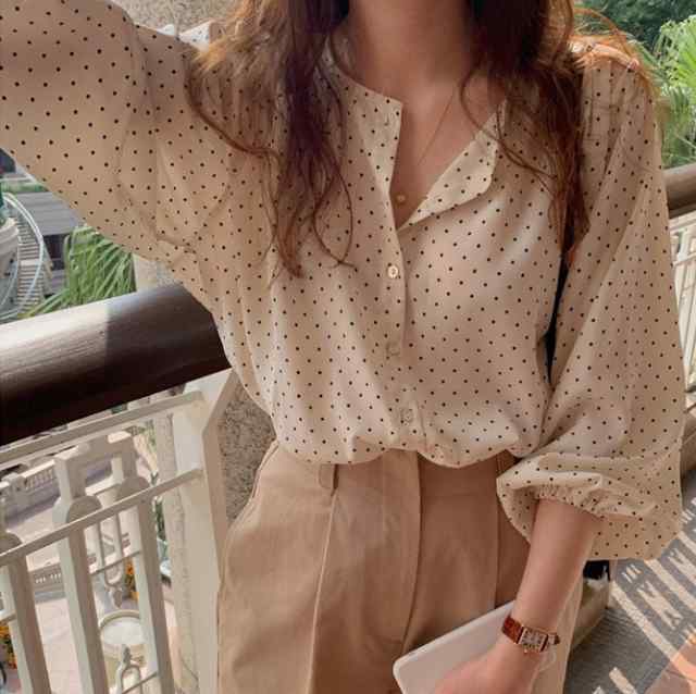 ブラウス レディース 長袖 シャツ 大きいサイズ トップス ブラウスシャツ シャツ シャーリング袖 ドット柄 シフォン ブラウス 袖コンシャス スキッパーシャツ 長袖 半袖 ボリューム袖 パフスリーブ フリル ペプラム Vネック フレア クルーネック ギャザー 開襟 リボン ボタン シャーリング袖 ドット柄 シフォン ロング丈 チュニック カットソー 八分丈 綿100% ボートネック ハイネック Vネック Uネック クルーネック ラウンドネック ワイドスリーブ バルーンスリーブ カジュアル フォーマル 売れ筋 定番 流行 トレンド ブルゾン 丸襟 ノーカラー
