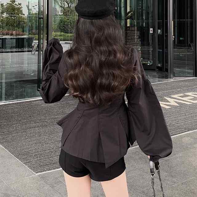 ブラウス レディース 長袖 シャツ 大きいサイズ トップス ブラウスシャツ シャツ アシンメトリー パフスリーブ ロング丈 キレイめ ナチュラル お洒落 可愛い SNS映え 新作 おすすめ 大人可愛い エレガント お出かけ デート モード系 無地