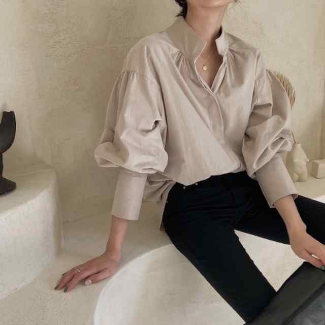 ブラウス レディース 長袖 シャツ 大きいサイズ トップス ブラウスシャツ シャツ スタンドカラー バルーンスリーブ 綿 キレイめ ナチュラル お洒落 可愛い SNS映え 新作 人気 おすすめ 大人可愛い エレガント お出かけ デート フェミニン