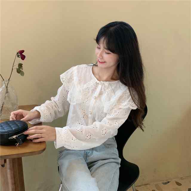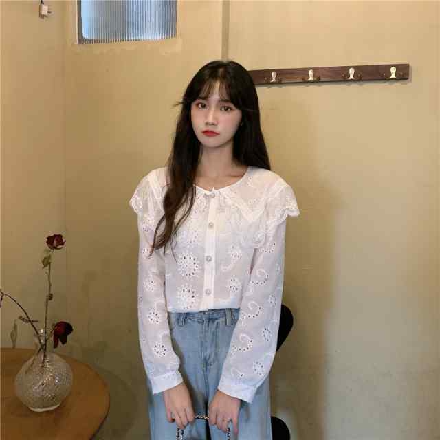 ブラウス レディース 長袖 シャツ 大きいサイズ トップス ブラウスシャツ シャツ 開襟 レース ラウンドネック 綿 リネン キレイめ ナチュラル お洒落 可愛い SNS映え 新作 おすすめ 大人可愛い エレガント お出かけ デート フェミニン